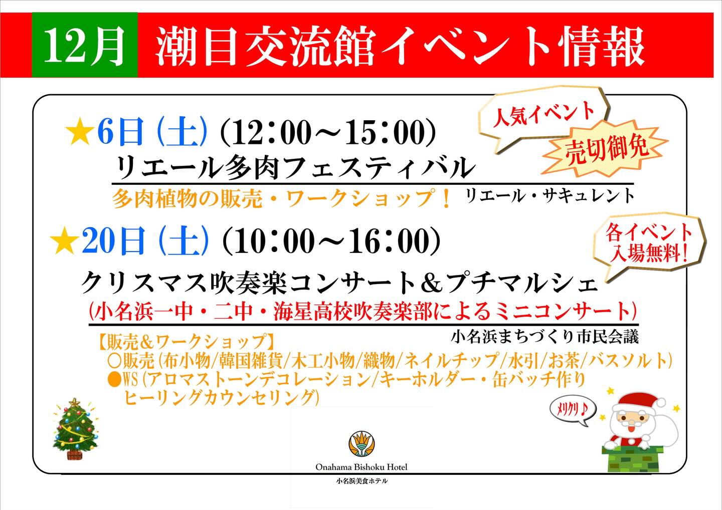 こんにちは!本日は小名浜美食ホテル2号棟、潮目交流館12月のイベントのお知らせです!いずれも入場無料イベントになります。ぜ...